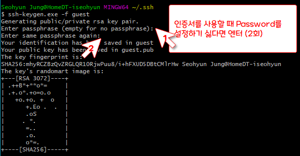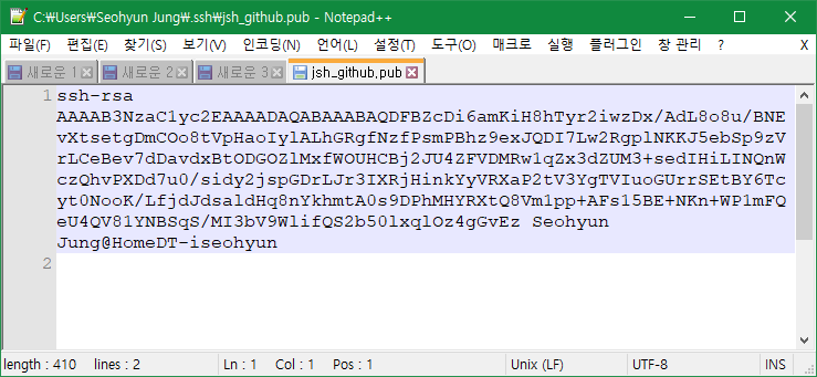 - 공개키 : 모든 사람들에게 나누어 주는 키, 복호화 할 때 사용 (.pub 파일)
