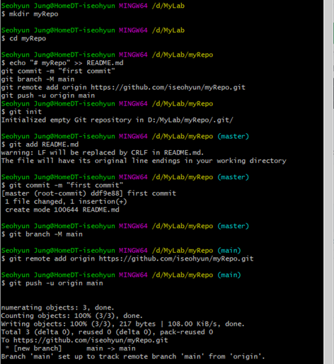 git remote add origin https://github.com/iseohyun/myRepo.git